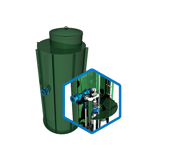 КНС канализационные комплектуется высококачественными компонентами, такими как шкаф управления Alta Control KNS с системой автоматизации, приборы контроля и измерения, система вентиляции, а также колодец с запорной арматурой при необходимости.
